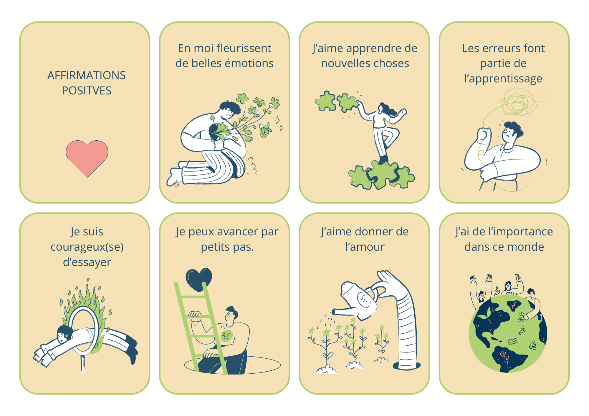 Ces cartes d’affirmations de soi ont été créées pour t’aider à développer un regard plus doux sur toi-même, renforcer la confiance en toi et installer un dialogue intérieur plus apaisé.