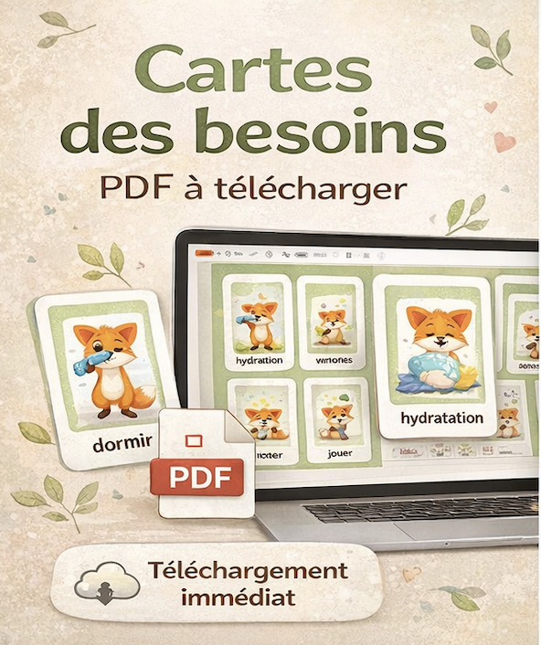 Grâce à des illustrations simples et ludiques, ces cartes aident à mettre des mots sur ce dont nous avons besoin au quotidien : boire, manger, se reposer, jouer, parler, recevoir de l’attention ou encore se sentir en sécurité.