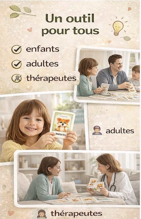 Ces cartes illustrées sont adaptées aux enfants comme aux adultes et peuvent être utilisées en famille, à l’école ou en accompagnement thérapeutique.