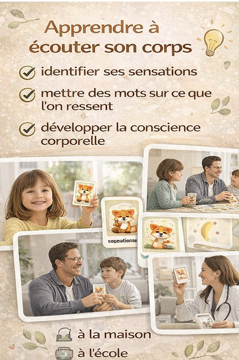 Grâce à des illustrations simples et accessibles, ces cartes aident à mieux comprendre les signaux corporels et à développer la conscience de soi.